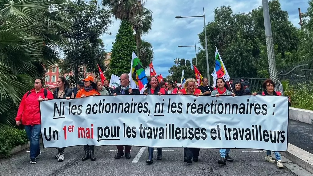 1er mai à Nice : quelques centaines de manifestants, incluant CGT, CFDT, communistes et écologistes, étaient rassemblés pour les ”travailleurs” et la paix à Gaza. Les jeunes, exprimant leur précarité, réclament un salaire de 1100 euros pendant leurs études. Le cortège militait pour les droits de tous les travailleurs, mais aussi pour un cessez-le-feu à gaza.
